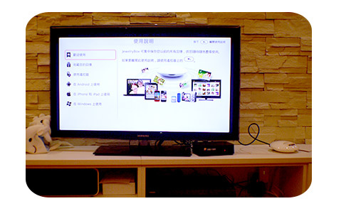 趁著他們乖乖坐在沙發上時,趕緊拍下來!!將JewelryBox連接電視後,
