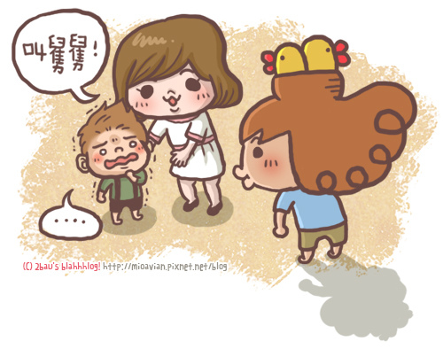 「再不乖乖吃飯就要舅舅來餵你吃喔!」