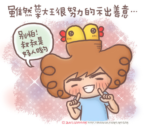 讓我印象深刻的是,之前聚會遇到一個小妹妹,每當菜大王走近,她就躲在媽媽後面,完全不敢直視菜大王,一副很害怕的樣子....,菜大王覺得亂尷尬的。