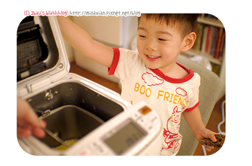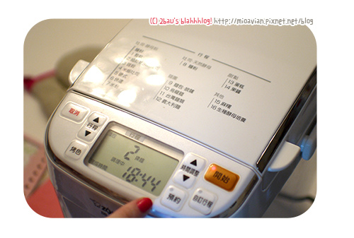 全部丟進去後,選擇行程1,就可以翹腳等麵包出爐了!! 根本太簡單方便了XD 還有預約功能呢!! 這樣子每天早上都有剛出爐的麵包吃,想到就覺得很幸福!
