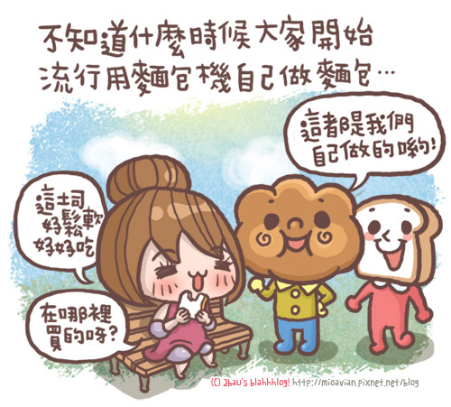 前陣子大家開始自己做麵包的時候,FB塗鴉牆一天到晚出現剛出爐的麵包照,看起來真好吃(流口水),但因為怕胖,怕三分鐘熱度,加上自己其實除了畫畫之外自認甚麼都做不好(掩面),所以也不敢買麵包機嘗試。